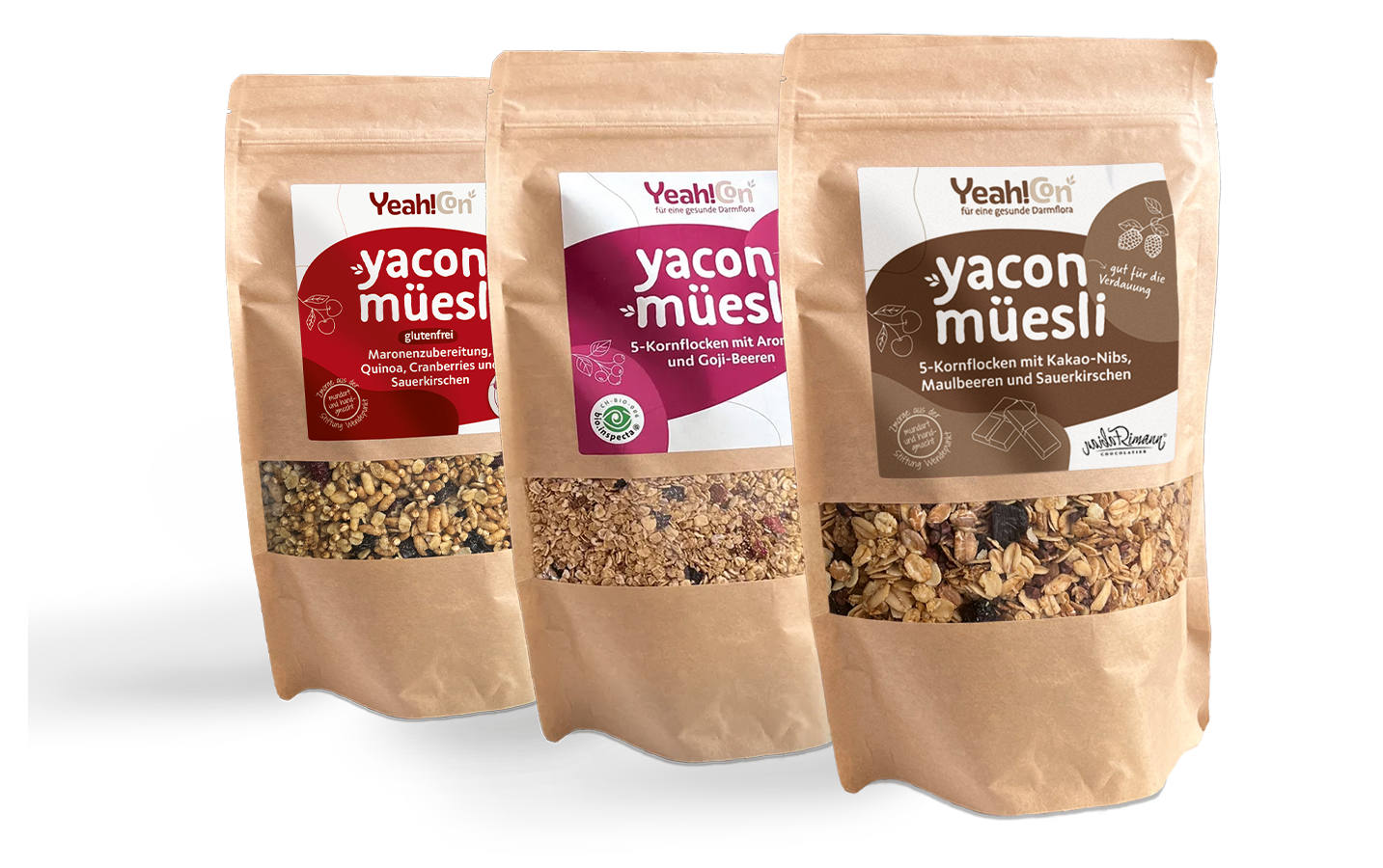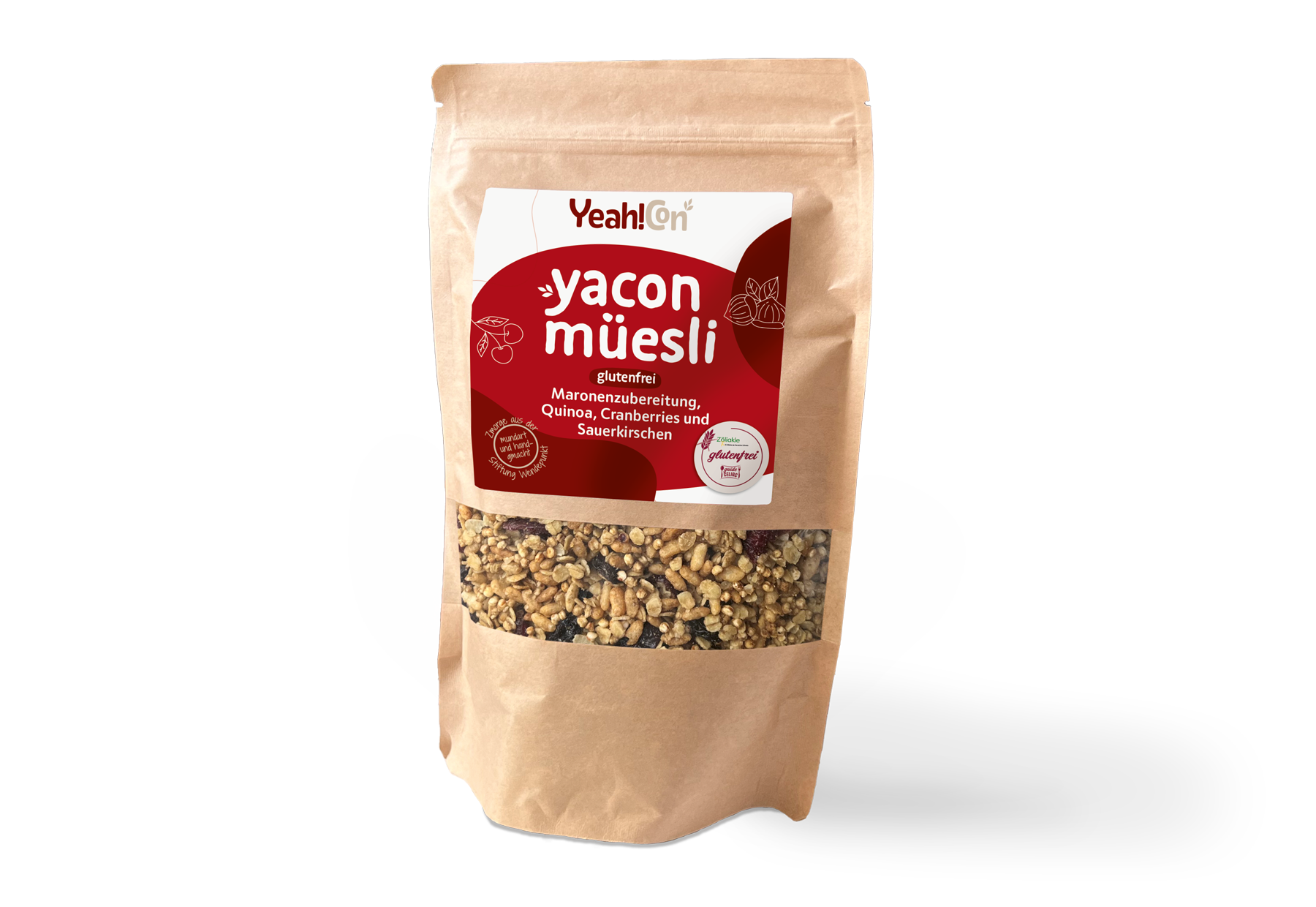 Im Vergleich zu herkömmlichem Zucker hat Yacon einen niedrigen glykämischen Index. Das bedeutet, dass es den Blutzuckerspiegel nur langsam ansteigen lässt, was eine gute Option für eine ausgewogene Ernährung ist. Unser Yeah!Con Müsli mit Yacon ist eine gesunde Wahl für eine stabile Energieversorgung über den Tag hinweg.